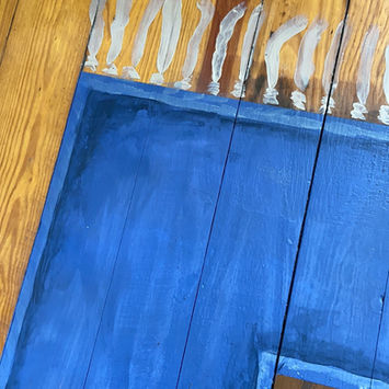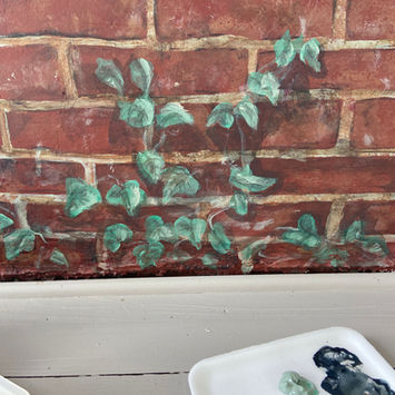 The many trompe l’oiel projects entertain our guests immensely and are a fun pastime. Below you will see in-process photos of the rug project and the brick project. More ideas abound and will be added as other projects get underway.