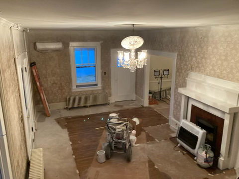 We used fabulous professional painters, heating and air professionals, and a great landscaper. Our first order of business was heating this wonderful old house. The inspector warned us that the old boiler may be operable, but probably not safe. As we did not want to tear up old plaster walls or do work in the “maybe” tenuous attic, we opted for splitters. https://www.fujitsugeneral.com/us/products/split/index.html. We used 6 splitters to start (1 living room, 1 dining room, 1 downstairs master, 1 upstairs front bedroom, 1 upstairs back bedroom and 1 in the upstairs landing). We felt the landing unit would heat and cool the little bathroom and tiny bedroom. We shall see. As there are baseboards in the studio and back bathroom, we thought the one unit in the master would suffice. We are re-thinking that due to the heat from the glorious skylight. I am trying one of the new small portable air conditioners to see if that does the job. Fans seem to help move the air around and who doesn’t love the white noise of a box fan? Shane Robinson and his crew installed the splitters and did their job cleanly and on time.