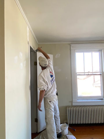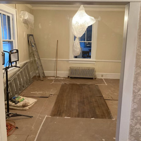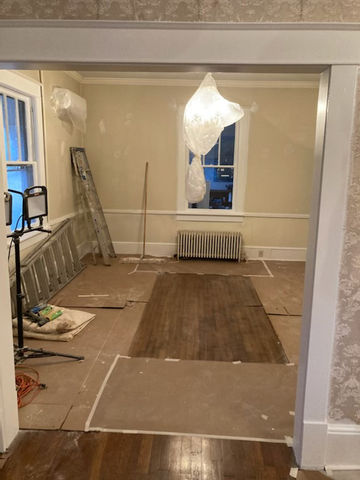Painting was a bit tricky. The 100 year old plaster walls in the main part of the house are pretty much held together by the old beautiful but worn wallpaper. After consultation with our fabulously knowledgeable painter and great guy Frank Higgins, we opted to patch areas right over the wallpaper and then paint. In places you can see the wallpaper design. We love that. We do need to install a picture rail hanging system (next on our list).